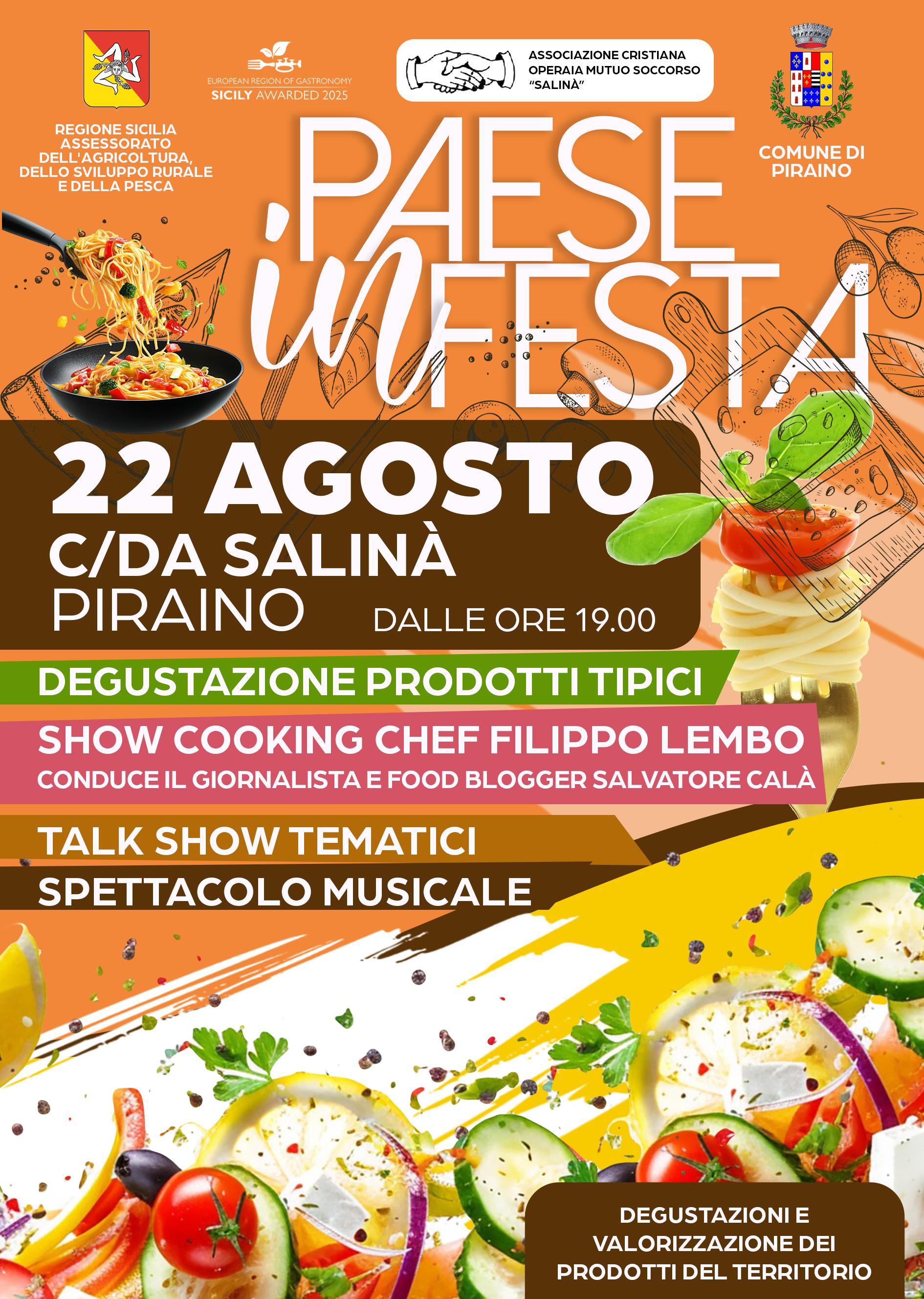Q-MAGAZINE. PIRAINO – SAPORI E TRADIZIONI CON “PAESE IN FESTA” IL 22 AGOSTO UN VIAGGIO ENOGASTRONOMICO NELLA CONTRADA SALINÀ