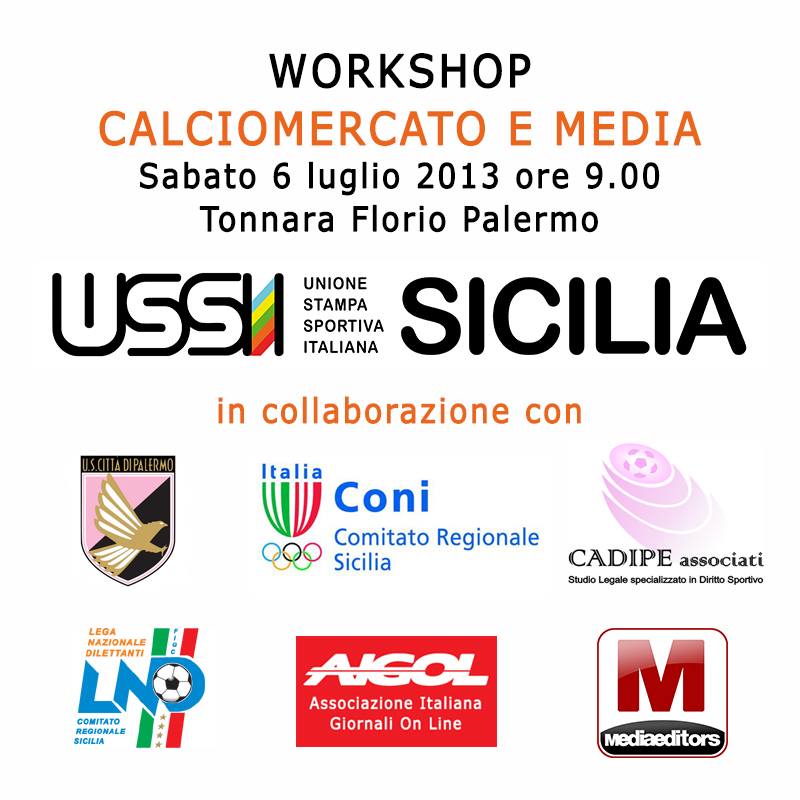 Il calciomercato e il lavoro del giornalista sportivo nel calcio moderno saranno gli argomenti principali del workshop “Calciomercato e Media”, organizzato dallo studio legale Cadipe Associati e Mediaeditors, con il patrocinio dell’Ussi Sicilia Occidentale e la partnership di Aigol, Associazione Italiana Giornali On Line. L’evento si svolgerà sabato 6 luglio 2013, dalle 9.00 alle 13.00, presso i locali della storica Tonnara Florio (Discesa Tonnara, 4) a Palermo, e vedrà la partecipazione, come relatori, di addetti ai lavori di primissimo piano.