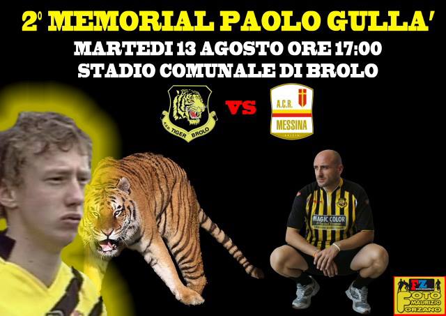 Martedi 13 agosto allo stadio comunale di brolo con inizio partita alle ore 17,00 2° memorial "Paolo Gulla'". si affronteranno in una amichevole di lusso la Tiger Brolo e l'acr Messina squadra neo-promossa in serie c2.