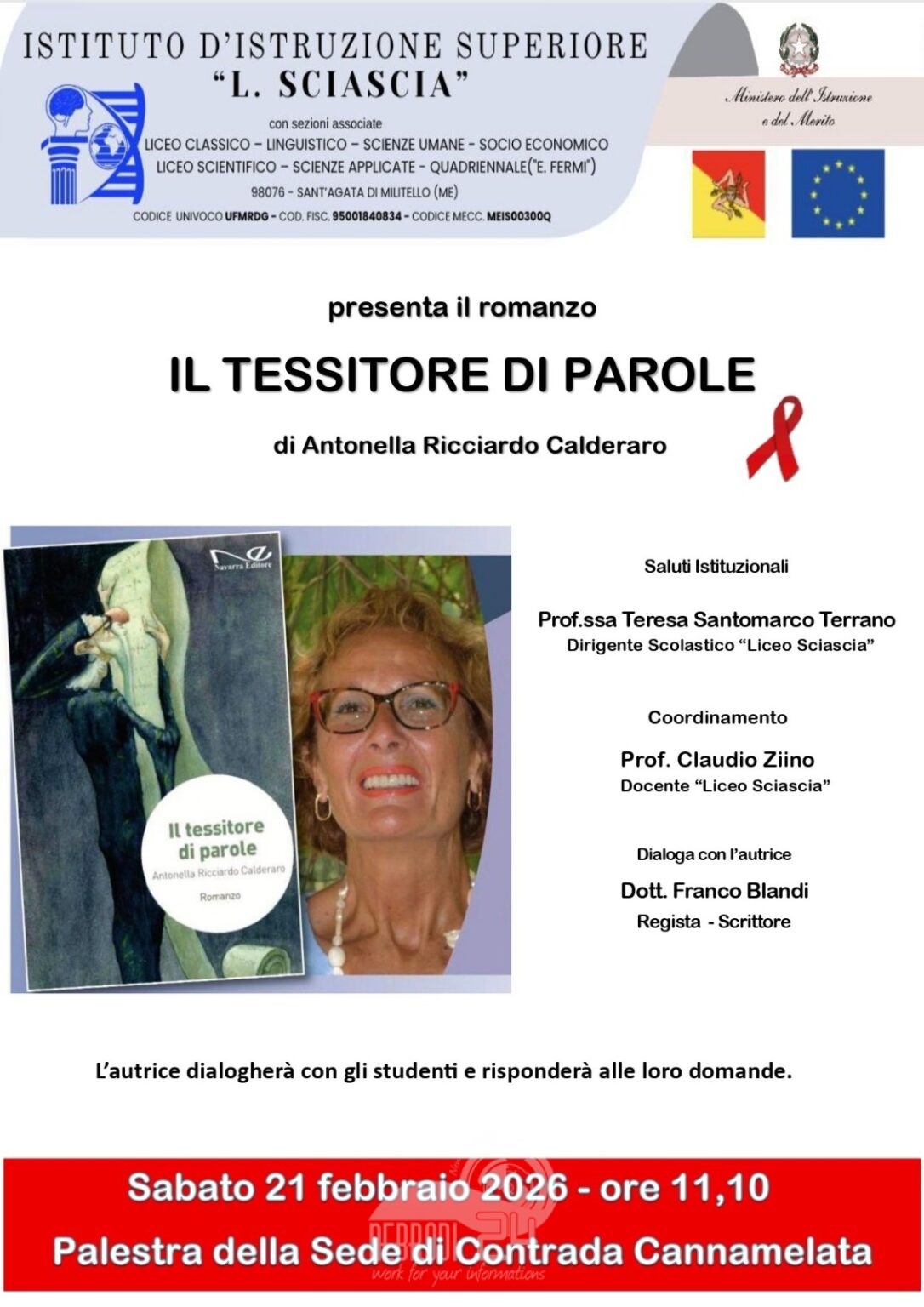 L’evento è organizzato dall’Istituto d’Istruzione Superiore “L. Sciascia”, un polo educativo d’eccellenza che conferma ancora una volta la sua vocazione non solo didattica, ma anche di attivo promotore culturale nel territorio messinese. L’incontro si aprirà con i saluti istituzionali della Prof.ssa Teresa Santomarco Terrano, Dirigente Scolastico del Liceo Sciascia, che darà il via ai lavori.