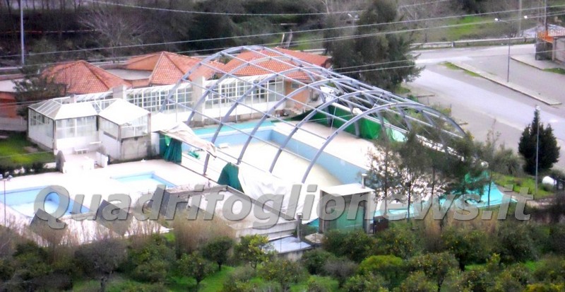 QUADRIFOGLIONEWS - divelto dal vento il telone che copriva la piscina comunale